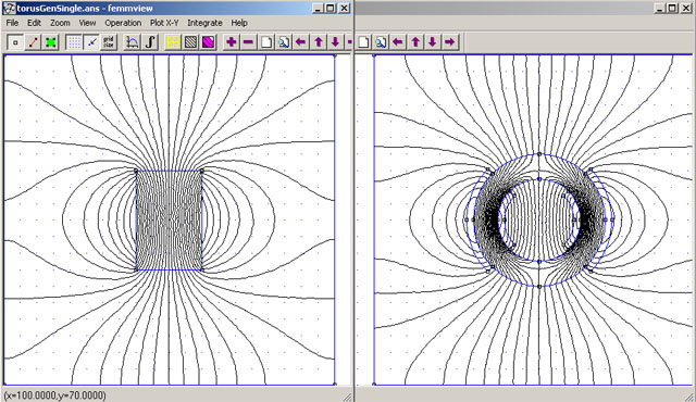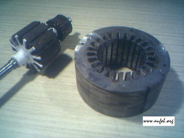 Nuž simulácia magnetického poľa na ďalšom obrázku mi už dávala zmysel. Nejaké toroidné jadrá mám tak som sa rozhodol to vyskúšať. Stále som ale ešte úplne nechápal ako pán Steven môže takto získavať elektrinu. Ani fotografia prototypu ani vídeo mi vlastne v podstate moc nepovedalo o princípe. Pomohla mi vlastne trochu náhoda, svojmu 11 ročnému synovi som k Vianociam kúpil elektro – stavebnicu. Pri skladaní som robil „odborný dozor“ a trochu aj pomáhal, a hoci starý ostrieľaný elektronik veru prvý krát v živote som navíjal elektromotor. Na škole sme síce princíp brali, ako aj iné silnoprúdové veci ale prax je prax. Uvedomil som si, že to vôbec nieje také zložité ako som si do vtedy predstavoval. A trojfázový motor je vlastne podobný len cievky niesu komutované (prepínané) ale vyvedené samostatne von. Čiže stačí takýto „rotor“ umiestniť do Stevenovho toroidu a nechať okolo neho obiehať magnetické pole. Vlastne som sa dopracoval k pôvodnému patentu Alberta Molinu len s rozdielom, že na vybudenie sa nepoužíva trojfázový prúd ale prúd z baterie ktorý je prepínaný stále dookola. Vypravil som sa teda do kovošrotu zohnať vhodné jádro na „rotor“. Šťastie mi prialo a našiel som nielen vhodný rotor pre moju variantu „Steven – Molinovu“ ale aj pre pôvodný Molinov patent. Všetko z rozobraných rôznych motorov.