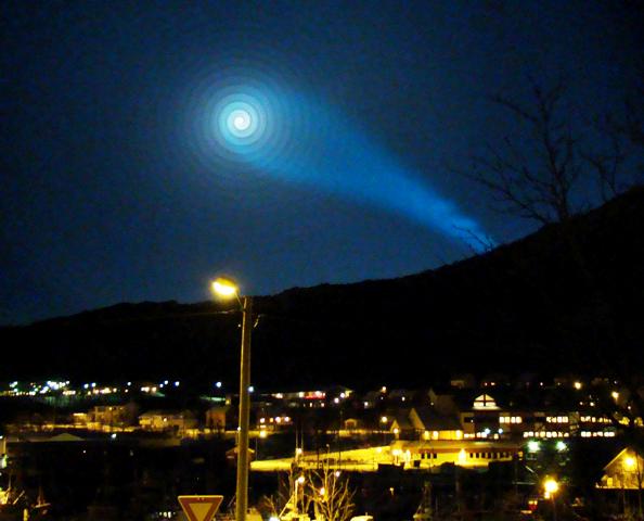 9. prosince 2009 (přibl. od 07:47 do 07:57) se nad temným norským nebem vytvořil velice zvláštní úkaz - bílá rotující spirála s jakýmsi modravým oblakem šroubovicového tvaru, který byl svázán se středem spirály. Pozorovatelé pomocí fotografií a videozáznamů zdokumentovali dvě fáze celého jevu. Rotaci spirály náhle vystřídal neustále rostoucí temný kruh (nebo koule), který postupně celou spirálu kromě modravého oblaku pohltil (nebo zastínil).