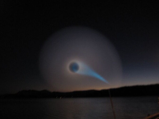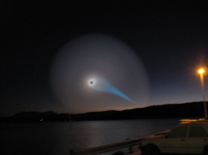 Spirálu potom začne náhle pohlcovat temný kruh, který se zvětšuje konstantní rychlostí a nijak nemění svůj tvar, je to stále přesný kruh. Pokud by raketě došlo palivo nebo pokud by explodovala, pozorovali bychom náhlé zhasnutí a v okamžiku by na nebi nebylo vidět vůbec nic, nebo bychom v případě exploze pozorovali jasný světelný záblesk. Ale v žádném případě bychom neviděli takto pravidelně rostoucí černý kruh, který celou spirálu postupně pohlcuje.