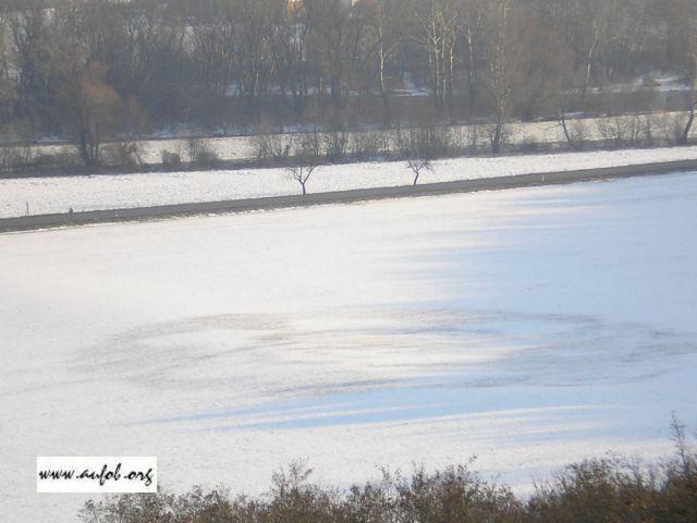 Dobrý večer, tak Vám posielam nejaké foto. Zábery na piktogram sú z 1. mája a v piktograme 11.5.2010. Repka olejka je tam, kde ovos ležal na zemi nižšia a riedko zídená. Cez víkend som šla okolo a repka už takmer odkvitla a teraz po tých dažďoch už to bude len zelené. Predpokladám, že zo skaly to asi aj tak bude viditeľné. Prikladám aj zimný záber z januára 2010, nech sa ľudia dokonale nabažia najkrajšieho kvetu na Slovensku. Inak som veľmi zvedavá, či to prežije ďalšiu orbu, a taktiež kto a prečo tam dorobil tie vlny.